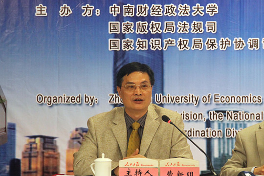 2012年4月15日上午,2012知识产权“南湖论坛”国际研讨会闭幕大会在深圳举行,中南财经政法大学知识产权研究中心常务副主任曹新明教授主持会议。