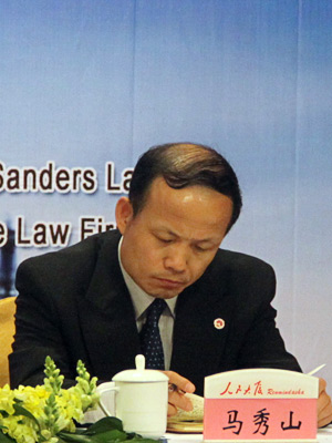马秀山副秘书长的演讲题目是“口号对于推进国家知识产权战略的作用”。通过引用各种名人名言,表明各个时期各政策的实施都得益于较好的口号,而且越接近基层的口号越能起到显著的效果。并且言简意赅的口号能使目标一目了然,有利于贯彻政策。口号在解决中国前进道路上的问题上起到很大作用,而知识产权制度是外国舶来品,运用口号可以较好地使人理解和适用该制度,口号是国家知识产权战略发展的金字招牌。从而进一步提出“知识产权富国”的口号。