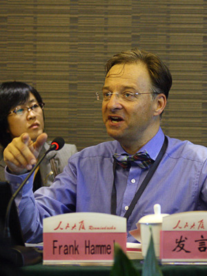 刘恒教授对讨论规则作简要说明后,南京师范大学中德法学所德方所长Frank A. Hammel教授以“中德知识产权保护基本原则”为题,首先介绍了中德之间的共同点,指出中国企业日益关注在欧洲的知识产权保护,中德都是作为世界知识产权保护组织的成员国、PCT、巴黎公约、伯尔尼公约、TRIPS的成员国。Hammel教授重点对比分析了中德之间的不同:第一,知识产权登记的基本原则:二者都遵循登记属地性原则,但在登记机关、延伸保护方面略有不同,并且中国知识产权执行需要正式登记,而德国可能不需要正式登记也可实现。第二,专利保护的基本原则,两国在发明专利、实用新型专利方面类似,但德国在今年1月份启动了专利起诉快速通道试点的计划;在观设计专利方面,二者的保护期不同,中国是10年,德国是25年,欧共体还对未登记的外观设计进行一定的延伸保护。第三,商标保护的基本原则:中国仅限于可视性商标,宽限期为3年,分类注册;德国还包括声音和气味商标,宽限期为5年,可多种类一次性注册,欧共体则实行一次性登记。第四,版权保护的基本原则:中国著作财产权的保护期为权利人死后50年,而人身权的保护无限期;德国财产权和人身权利的保护期皆为死后70年。第五,知识产权执行原则:德国没有行政程序,没有侵权证据的认证或合法化的要求,最后Hammel教授还提到交易会帮助台。