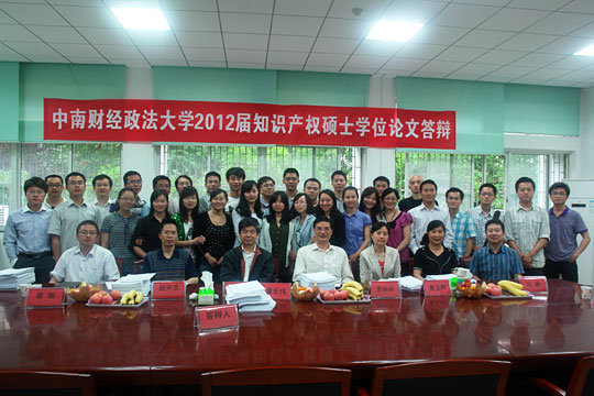 2012届知识产权硕士研究生于2012年5月24日在知识产权研究中心图书馆进行了硕士论文答辩并全部顺利通过。武汉市知识产权局局长董宏伟任答辩委员会主席,知识产权研究中心曹新明教授、马琳教授、胡开忠教授、黄玉烨教授、詹映副教授任答辩委员会委员。30名2012届知识产权硕士研究生参加答辩。中心硕士研究生谢波、廖菲、樊思思、李德军担任答辩秘书。