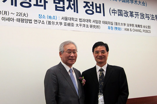 曹新明教授与韩国首尔大学亚洲太平洋法研究所所长权五乘教授在大会现场