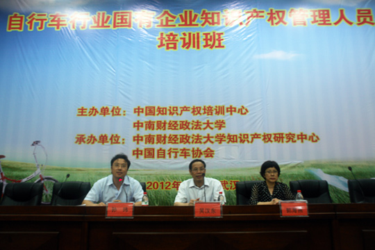 2012年6月28日上午,“自行车行业国有企业知识产权管理人员培训班”开班仪式在中南财经政法大学文泓楼学术报告厅举行。