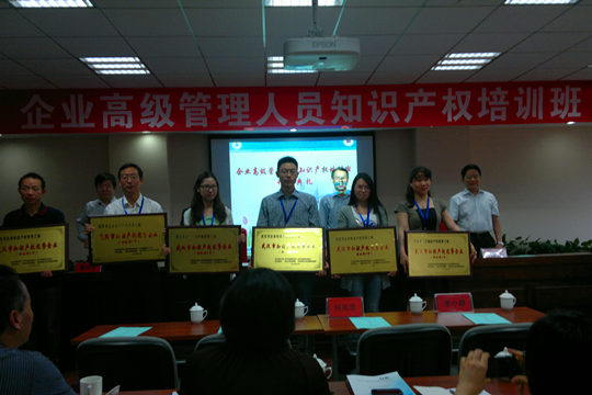 2013年5月8日,由中国知识产权培训中心主办,武汉市知识产权局、中南财经政法大学知识产权学院、中国知识产权协同创新中心协办的企业高级管理人员知识产权培训班开班仪式于国家检察官学院(湖北分院)举行。中国知识产权培训中心燕冲副主任、武汉市知识产权局董宏伟局长、中南财经政法大学校长吴汉东教授、武汉市知识产权局陈保国副局长、中国知识产权培训中心赵辉、李小耕、武汉市知识产权局丁科先生等出席了开班仪式,开班仪式由中南财经政法大学知识产权学院副院长赵家仪教授主持。仪式中,吴汉东教授和燕冲副主任先后讲话,随后举行了武汉市知识产权优势企业授牌仪式,最后由武汉市知识产权局董宏伟局长致辞并宣布培训班开班。