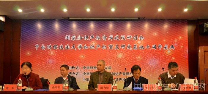 2014年12月21日上午9时,中南财经政法大学知识产权重点研究基地十周年庆典在中天世纪大酒店举行。出席本次会议的领导和嘉宾有国家知识产权局前局长、中南财经政法大学知识产权研究学院院长田力普教授,国家知识产权局保护协调司黄庆司长,国家版权局版权管理司于慈珂司长,文化部民族民间文艺发展中心李松主任,国家版权局版权管理司汤兆志副司长,中华商标协会肖芸副秘书长,北京知识产权法院陈锦川副院长,中国知识产权研究会常务副会长、中国社会科学院知识产权中心主任李明德教授,韩中知识产权研究会会长、韩国东国大学朴荣吉教授,广东省知识产权局马宪民局长,德恒律师事务所创始人、首席全球合伙人、德恒律师事务所主任王丽,湖北省高级人民法院常务副院长覃文萍,武汉市知识产权局局长董宏伟,中南财经政法大学学术委员会主席、知识产权研究中心主任吴汉东教授,中南财经政法大学校长杨灿明教授,中南财经政法大学副校长姚莉教授。参加本次研讨会的嘉宾还有来自美国、韩国等国家以及我国台湾地区的专家学者,知识产权各界的律师、法官、学者、企业界等实务工作者,以及新华社、人民日报等媒体记者。