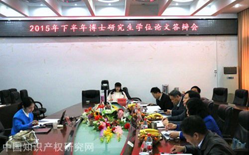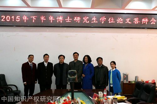 2015年11月6日,中南财经政法大学知识产权学院2015年下半年博士研究生论文答辩会在文泓四楼会议室举行。武汉大学博士生导师宁立志教授担任本次答辩委员会主席,华中师范大学知识产权研究所所长刘华教授、中心主任吴汉东教授、曹新明教授、胡开忠教授、彭学龙教授担任此次答辩委员会委员。曹新明教授指导的博士生郑颖婕和彭学龙教授指导的博士生李士林参加此次答辩,知识产权研究中心硕士邓少芳担任此次答辩会秘书。