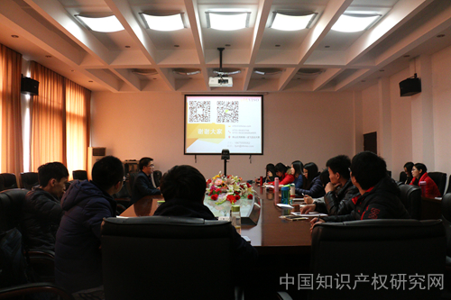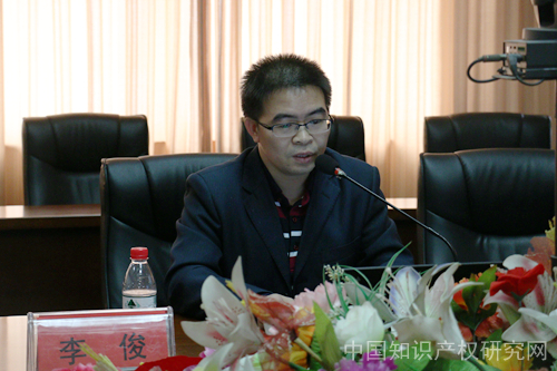 2015年12月11日下午,深圳市智汇远见知识产权管理有限公司总裁、创始合伙人李俊在文泓楼四楼会议室讲授知识产权实务课程,本讲主题为“知识产权与企业经营”,我校知识产权研究中心2014级全体硕士研究生到场聆听。