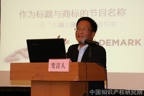 中南财经政法大学知识产权研究中心教授彭学龙围绕“非诚勿扰”案,就节目名称,作品名称,作品标题,栏目名称,在法律上起的作用和地位从标题性使用和商标性使用的不同角度分析论述。