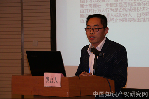 华侨大学法学院副教授李士林以通知移除规则的《商标法》适用及措施优化为题,对通知移除规则能否在商标法领域进行适用以及如何改良性适用进行了深入探讨,提出在侵权判定中引入第三方机构等措施。