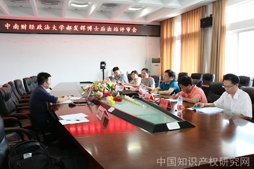 2016年7月1日下午,法学博士后流动站郝发辉博士后出站考核评审会在中南财经政法大学知识产权研究中心四楼会议室顺利举行。本次博士后出站考核评审会由武汉大学法学院宁立志教授担任主席,华中师范大学法学院刘华教授,中南财经政法大学知识产权研究中心胡开忠教授、黄玉烨教授、彭学龙教授以及合作导师曹新明教授组成博士后出站考核评审会专家团。