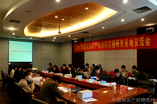 江城春暖,风和日丽。3月27日上午,2017年国家知识产权战略实施研究基地(以下简称基地)交流会在这明媚的日子里于武汉中天世纪大酒店(中南财经政法大学学术交流中心)顺利召开。国家知识产权局保护协调司张志成副司长、保护协调司战略协调处刘洋处长、梁心新副处长、国家知识产权局办公室政研处张鹏副处长、中南基地吴汉东主任、北大基地易继明主任、同济基地朱雪忠主任、天大基地张维主任、航天科工基地谷满仓主任、大连理工基地丁堃主任出席会议,参与会议的还有其他来自国家知识产权局的领导以及六大国家知识产权战略实施研究基地的副主任和研究员。保护协调司战略协调处刘洋处长主持此次会议。