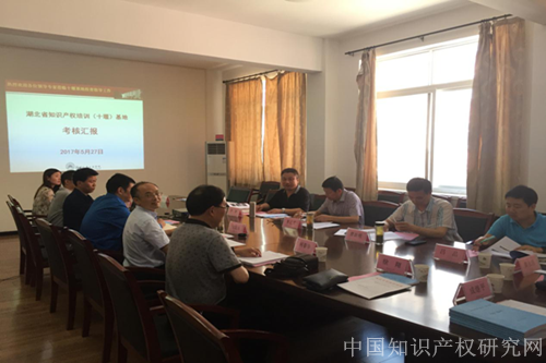 2017年5月27日,中国知识产权法学研究会副会长∙湖北省知识产权研究会理事长∙湖北省知识产权法学研究会会长∙中南财经政法大学知识产权研究中心主任曹新明教授、国家知识产权培训(湖北)基地办公室主任吕品、湖北省知识产权研究会秘书处秘书刘琪琳受湖北省知识产权局委托,会同省知识产权局副局长李述武、省知识产权局办公室主任李铮等人对湖北省知识产权培训(十堰)基地进行了考核评估,曹新明教授担任考核工作组组长。十堰市知识产权局副局长柯春华、湖北汽车工业学院副校长张友兵、湖北汽车工业学院科研处处长徐翔等参加了此次考核评估汇报会。
