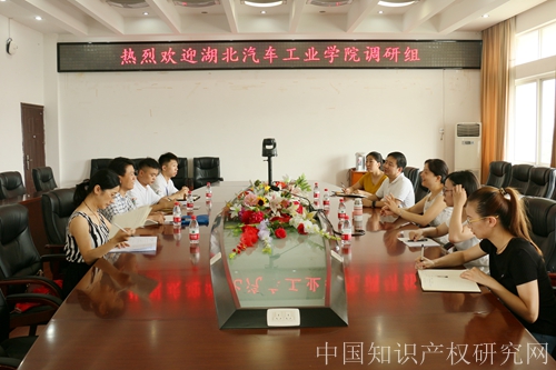 为优化知识产权人才培养模式,完善知识产权研究平台,促进知识产权成果转化,拓宽知识产权投融资的探索渠道,2017年7月6日,湖北汽车工业学院调研组一行前来中南财经政法大学知识产权研究中心调研。中南财经政法大学知识产权学院副院长黄玉烨教授、办公室主任吕品老师,中南财经政法大学企业价值研究中心·知识产权产业化研究中心助理研究员吴祺博士一同接待了调研组一行,对调研组一行的到来表示热烈欢迎。
