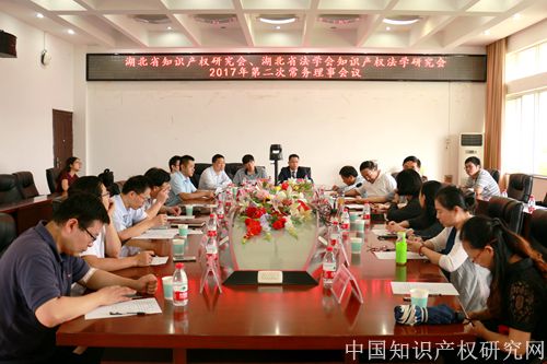 湖北省知识产权研究会、湖北省法学会知识产权法学研究会(以下简称“两会”)2017年第二次常务理事会议于9月23日在我校知识产权研究中心四楼会议室顺利举行。本次会议由知识产权研究中心主任、湖北省知识产权研究会会长、湖北省法学会知识产权法学研究会会长曹新明教授主持。中心副主任胡开忠教授、彭学龙教授以及校外众多专家学者出席了此次会议。