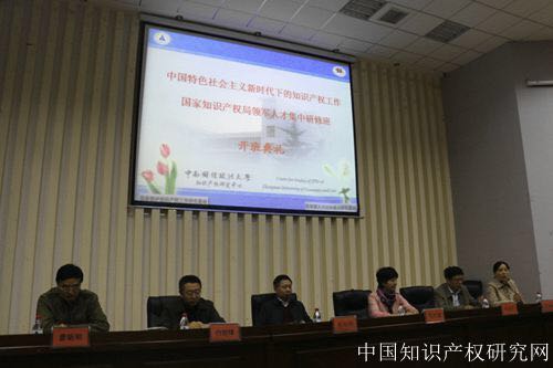 在十九大召开之际,为了助力新时期中国知识产权事业的发展,促进知识产权工作的顺利进行,11月13日,国家知识产权局领军人才集中研修班在中南财经政法大学知识产权研究中心一楼报告厅举行。本届研修班由国家知识产权局人才工作组办公室主办,国家知识产权专利局审查协作湖北中心协办,中南财经政法大学知识产权研究中心协办。开班仪式由中南财经政法大学知识产权学院副院长黄玉烨教授主持,国家知识产权人教部马文霞部长、湖北省知识产权局李述武副局长、国家知识产权局专利局审查协作湖北中心白剑锋副主任、中南财经政法大学校长杨灿明、中南财经政法大学知识产权研究中心主任曹新明教授出席并发表讲话。