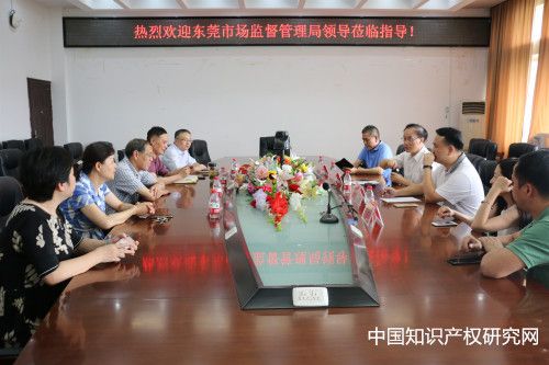 2019年7月8日,东莞市市场监督管理局领导一行人来访,与中心共同探讨合作事宜。出席会议的有东莞市市场监督管理局党委书记、局长陈锡稳,东莞市市场监督管理局办公室主任祁宝忠,东莞市市场监督管理局塘厦分局局长曾行三,东莞市市场监督管理局办公室科员叶金华。中南财经政法大学学术委员会主席、文澜资深教授吴汉东教授,中南财经政法大学知识产权研究中心主任曹新明教授,中南财经政法大学知识产权学院副院长黄玉烨教授,中南财经政法大学知识产权研究中心詹映教授共同出席会议,会议由黄玉烨教授主持,中心老师对各位领导的到来表示衷心欢迎。
