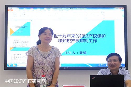授课前,黄玉烨教授裴缜法官进行简要介绍,并对裴缜法官到中心授课表示热烈欢迎。裴缜法官以“入世十九年来的知识产权保护和知识产权审判工作”为主题,首先通过数据分析了加入WTO以来我国以来GDP的快速增长和社会的巨大变化,特别是在国际贸易方面,以及由此给知识产权保护带来的挑战。之后从知识产权的基础理论入手,通过讲述华为科技、小米科技、青蒿素等科学技术和科学发现,深入阐述了科学技术对经济发展带来的巨大收益和知识产权保护的重要性。