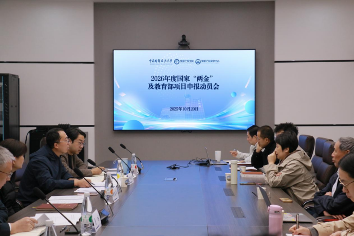2025年10月20日下午,中南财经政法大学知识产权学院(知识产权研究中心)全体教职工大会暨国家“两金”及教育部项目工作会议在文泓楼召开。会议由知识产权学院院长黄玉烨教授主持,中南财经政法大学科学研究部邢海亮副部长、知识产权学院副院长詹映教授分别就相关工作展开宣讲,副院长徐小奔教授、学校科学研究部项目科王胜主任、学院全体教职工参会。