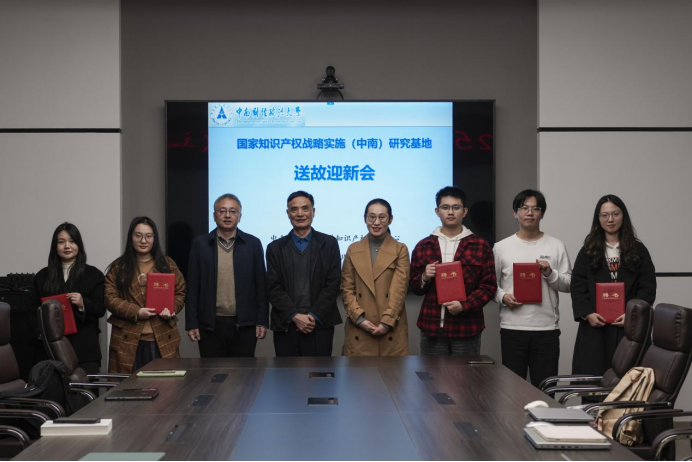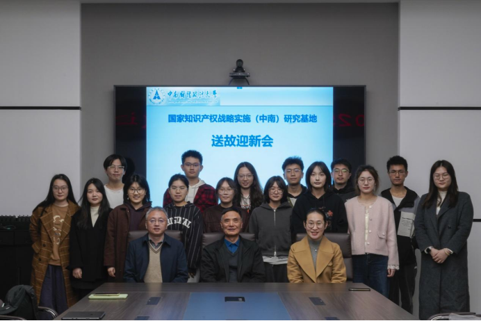 2025年10月22日晚,2025年度国家知识产权战略实施(中南)基地送故迎新会在文泓楼四楼会议室举行。会议由基地办公室主任杨曦老师主持,基地常务副主任曹新明教授,基地副主任詹映教授及全体研究助理参加会议。会议围绕2023级成员换届送别、2025级新成员欢迎、基地发展回顾、工作部署与经验分享展开。