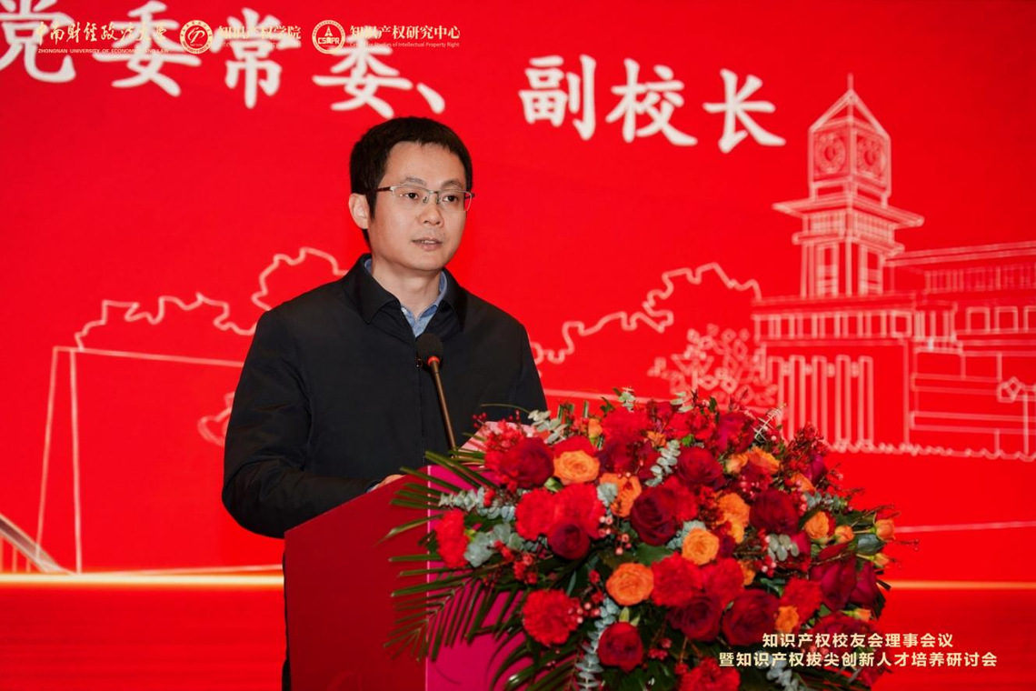中南财经政法大学党委常委、副校长陈柏峰代表学校对远道而来的各位校友、嘉宾表示热烈欢迎,向长期关心支持学校及知识产权学科发展的各界朋友致以诚挚感谢。他指出,知识产权学科作为学校特色优势学科的闪亮名片,历经深耕已建成国内顶尖、国际知名的学科高地,形成了独具特色的“中南学派”,为国家知识产权治理现代化提供了坚实智力支撑。他强调,校友是母校最宝贵的财富,校友会是联结母校与校友的重要纽带,希望各位校友常念母校情、多为母校谋发展,与母校在人才培养、科研创新等方面深化合作、双向赋能,携手谱写世界一流知识产权学科建设新篇章。