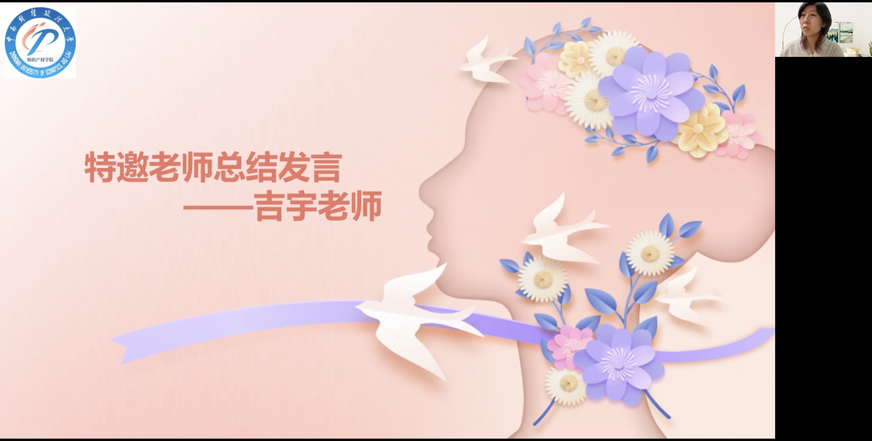 最后,吉宇老师对本次活动进行了总结发言。吉老师给大家分享了面对职场性骚扰保护自己的方法,同时强调了保留证据和寻求帮助的重要性。她提醒学生在职场中遇到不当行为时要勇敢说出来,不要因为羞耻而沉默。