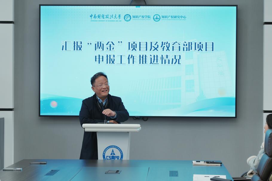 知识产权研究中心主任彭学龙教授就学院科研工作推进作专项汇报,介绍“两金”项目及教育部项目申报的现阶段进展,并对后续申报工作进行统筹部署,号召全院教职工协同发力、攻坚克难,全力做好科研项目申报各项工作。