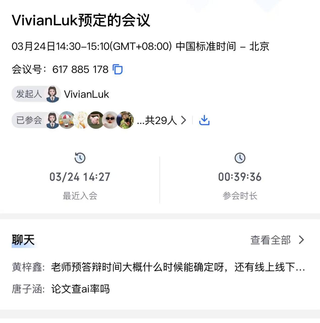 整场班会内容充实、重点突出,既有务实的毕业工作指导,也有暖心的关怀与鼓励,有效破解了同学们在毕业准备阶段的困惑,进一步明确了后续推进方向,坚定了大家顺利毕业的信心。同学们纷纷表示,此次线上班会干货满满、收获良多,将认真落实陆老师的指导,有条不紊推进学分核对、论文撰写等各项毕业准备工作,以昂扬姿态迎接毕业,奔赴人生新征程。