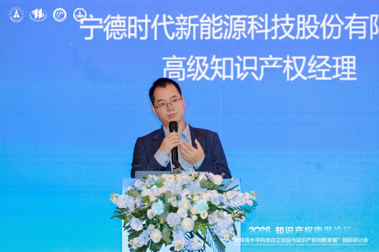 宁德时代新能源科技股份有限公司高级知识产权经理陈得宗以“知识产权保护助力新能源产业高质量发展”为题,分享了宁德时代通过全球知识产权布局驱动绿色能源转型的实践。他强调,创新是宁德时代的DNA,公司通过高强度研发投入(五年超800亿)实现了动力电池与储能出海量的全球领先。陈得宗提出“保护知识产权是反内卷良方”,主张通过严密的全球维权与合理的双向许可构建商业闭环。他呼吁以创新驱动发展、以保护驱动创新,利用硬核技术与产权保护共同构建低碳、绿色、繁荣的未来。