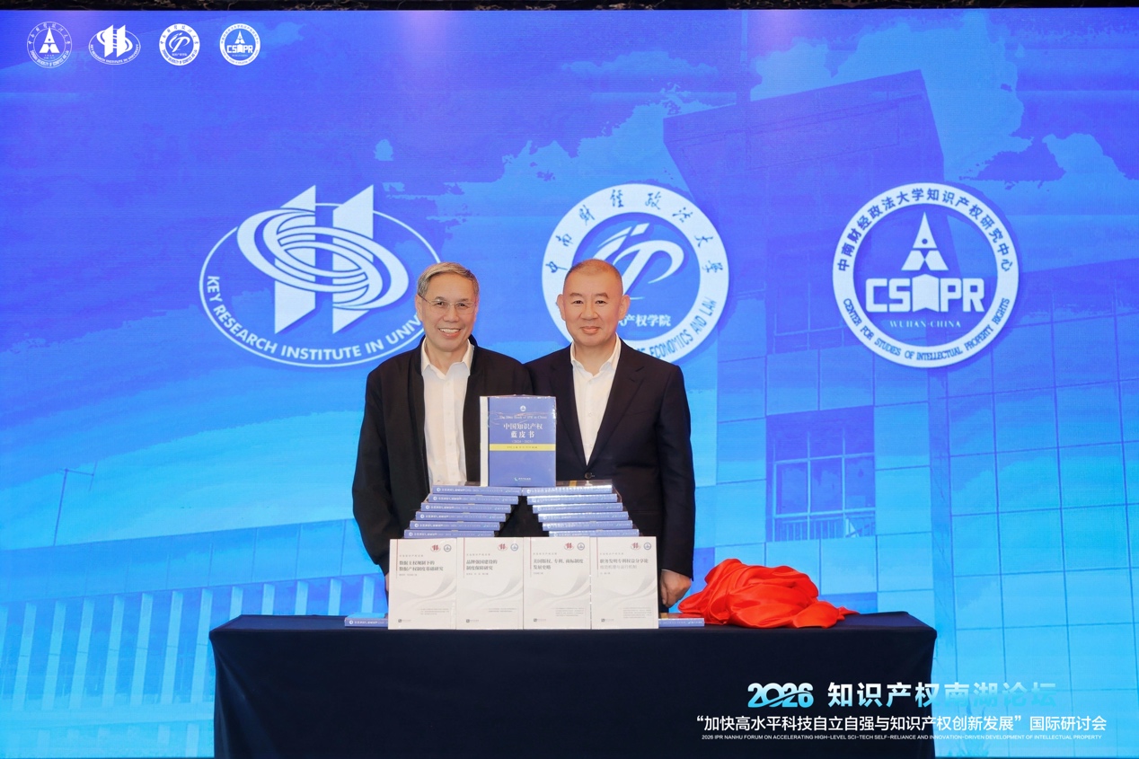 闭幕式上,重磅学术成果集中发布与推介。《中国知识产权蓝皮书(2024—2025)》 正式发布,该书由教育部人文社科重点研究基地中南财经政法大学知识产权研究中心编撰,自2007年首发至今已推出第15卷,全面梳理知识产权立法进展、司法实践、产业应用与国际动态,与官方白皮书形成互补,是我国知识产权领域权威年度学术报告。同时,“文泓知识产权文库” 同步推介,该文库聚焦知识产权优质研究成果,已出版多部学术著作,致力于打造国内知识产权研究标志性学术品牌。中南财经政法大学文澜资深教授、知识产权研究中心名誉主任吴汉东教授,中国科学院大学知识产权学院院长马一德教授共同为成果揭幕。