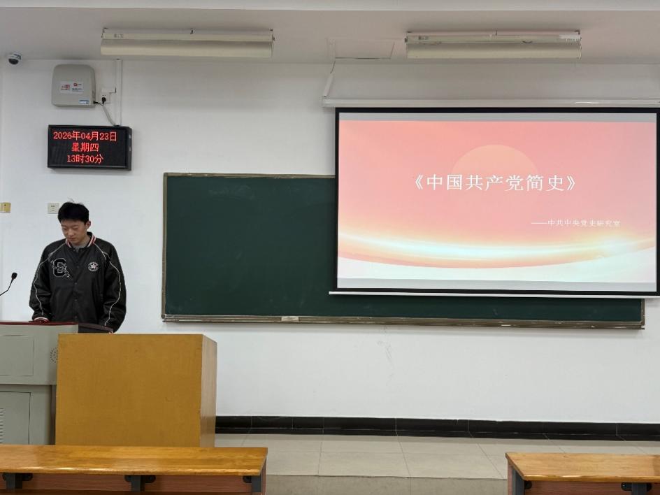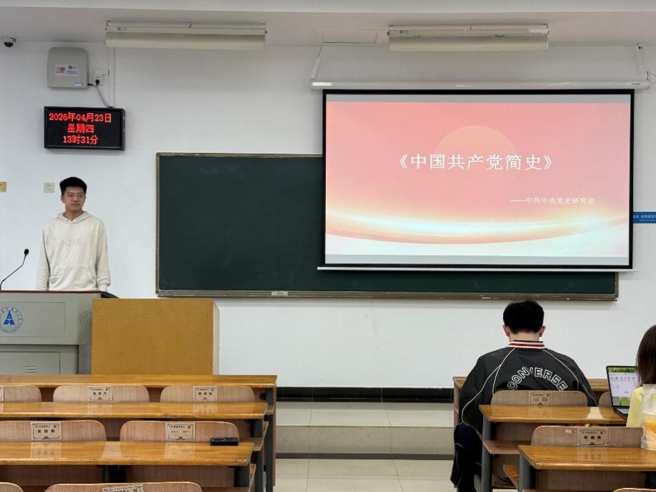 党日活动结束后,红色读书会在浓厚的书香氛围中拉开帷幕。主持人石林鑫首先介绍了本次红色读书会的阅读书目《中国共产党简史》,阐明了通过重温党的光辉历程、感悟党的初心使命来坚定理想信念的重要意义,得到在场同学的一致认同。在读书分享环节,本科生代表黎炳钦结合自身学习成长经历,生动讲述了阅读《中国共产党简史》带来的思想触动与精神洗礼,表示要赓续红色血脉,走好新时代青年的长征路。随后,研究生代表胡思哲从专业研究角度出发,分享了将党史学习教育与学术探索相结合的思考体悟,提出要在知行合一中传承党的优良传统。两位代表的发言情真意切,引发了强烈共鸣。在自由交流环节,全体同学踊跃发言,围绕书中感人篇章和党史重大事件交流心得,现场气氛热烈。